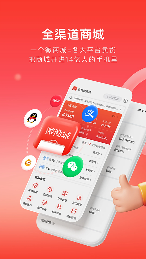 有赞微商城APP是由杭州有赞科技有限公司主打的一款专业的手机快速开微店APP。如果你想要拥有一个需要直接的店铺,但是却怕本金太少不够开店铺。那么来选择这个平台是肯定不会错的,有赞微商城APP帮您3分钟开店,快速上手。有赞,帮助商家快速搭建微商城,进行网上开店、社交营销、顾客留存,让生意更好做。支持一键生成小程序,获取更多流量。截至2018年,有赞服务商家442万,电商交易额达330亿元人民币。