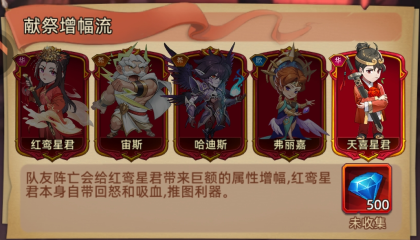 队友阵亡会给红鸾星君带来巨额的属性增幅,红鸾星君本身自带回怒和吸血,推图利器。