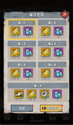 进入游戏后记得完成每日签到,可领取强化基因、电池等基础资源,第7天还能额外获得摸金卡与零件为前期战力成长打下基础。