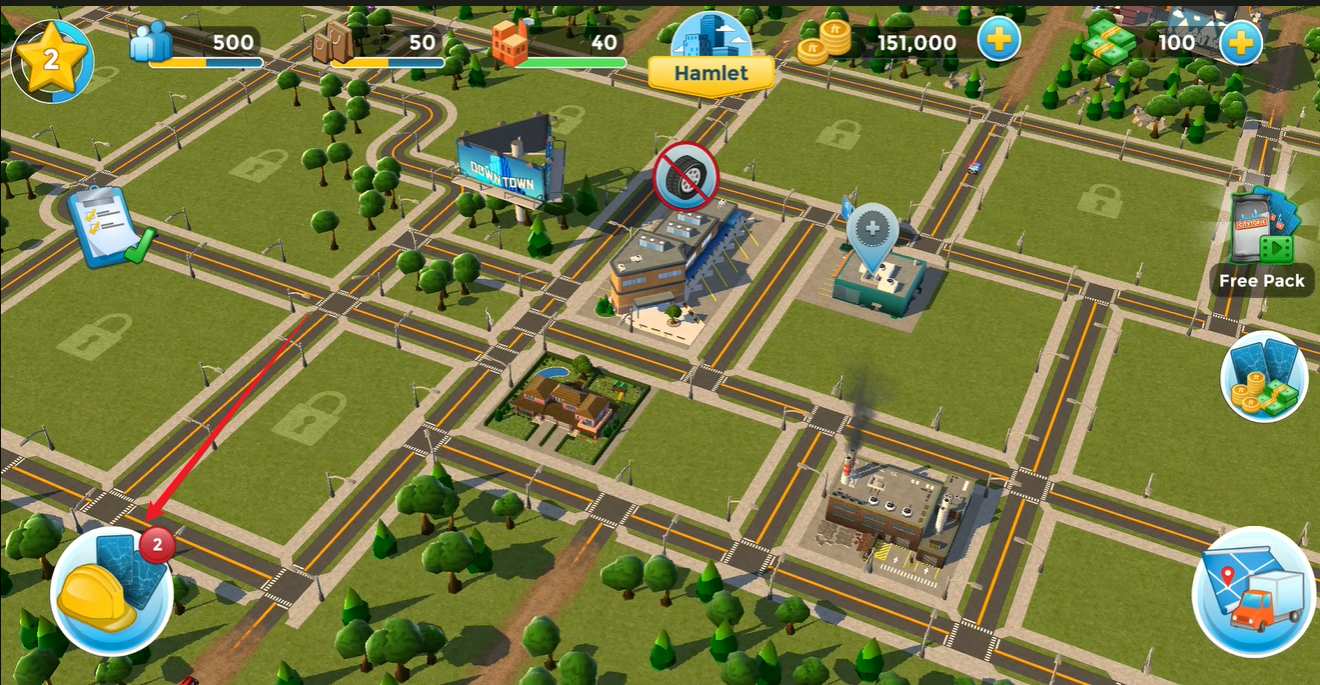 1、进入城镇建设者后,玩家需要在空地上规划并建设城市,首先点击左下角的“建设”按钮,即可打开建筑面板。