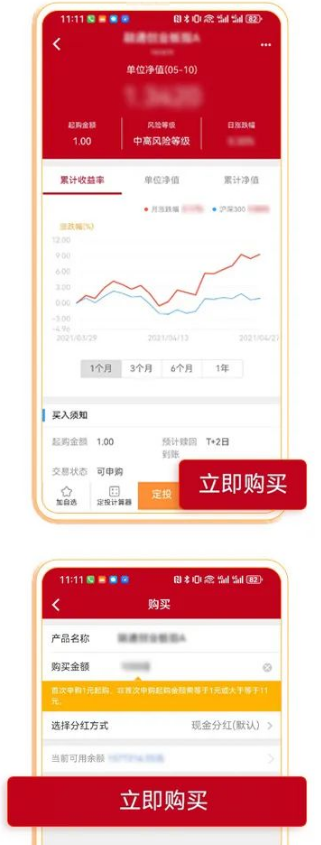 4.点击“立即购买”并输入购买金额和选择分红方式