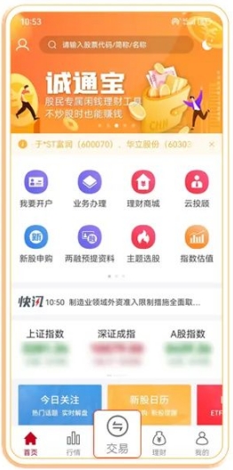 诚通证券app是诚通证券为广大投资者量身打造的移动互联网时代投资利器,产品支持股票行情查询、股票交易、基金理财、现金理财、银证转账、密码修改、权限开通、账户开通、股民学校等业务。