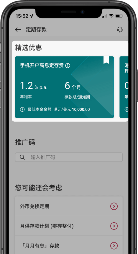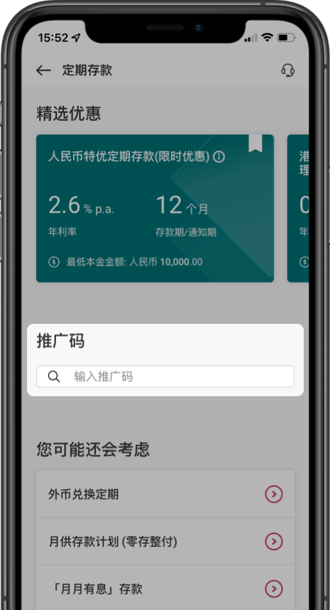 2.于定期存款页面输入推广码