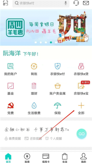 1、打开重庆农商银行手机银行APP,点击下方的“全部”按钮;