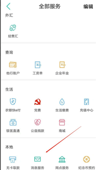 2、在“全部服务”界面中找到“消息服务”,点击进入;